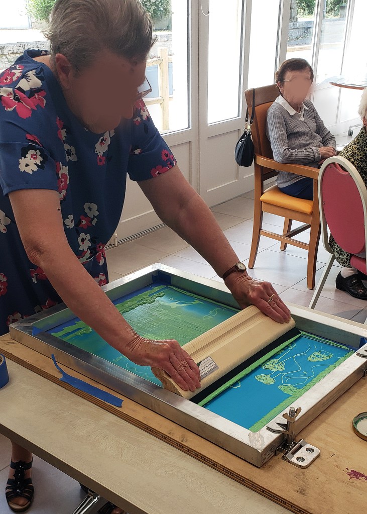 Ateliers de sérigraphie, CSC de Mauzé-sur-le-Mignon et résidences Les Glycines de Saint-Hilaire-la-Palud,