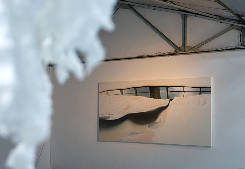 Ces peintures sont créées à partir de photographies prises à deux moments distincts lors du processus de création d’Hypnagogie, œuvre animée et éphémère.