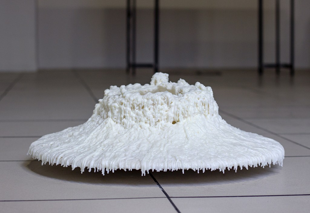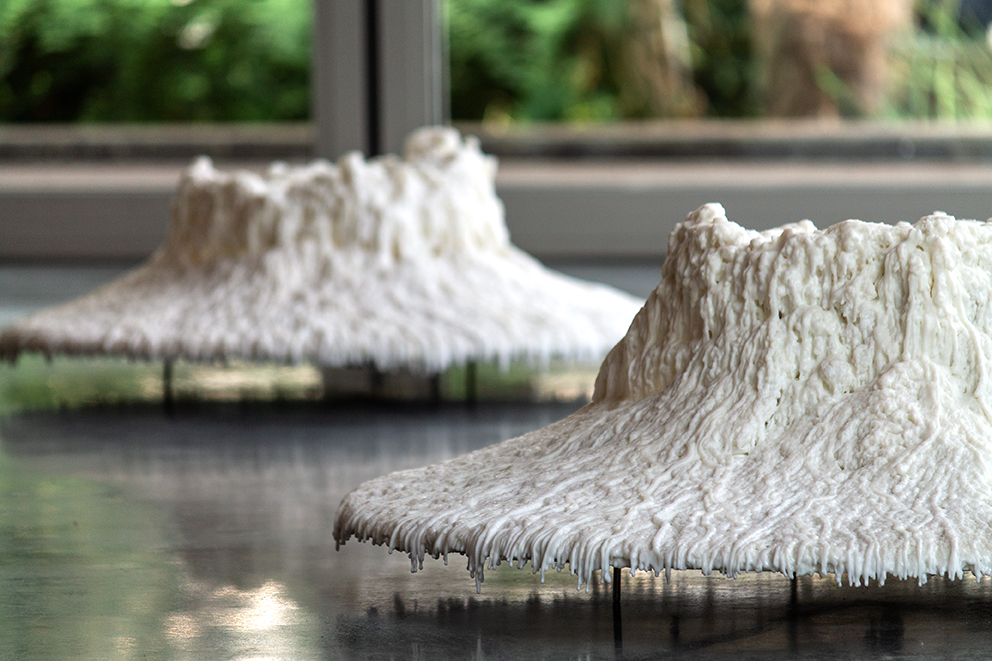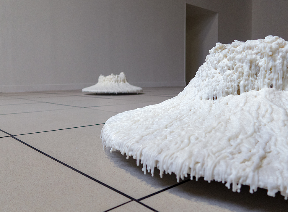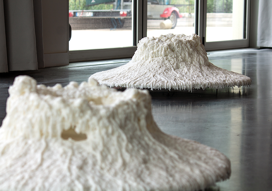 Les trois sculptures Ol Doinyo Lengaï sont créés à l’aide d’une machine intervenant comme un outil. Elles font écho au volcan unique au monde du même nom. Situé au nord de la Tanzanie, celui-ci crache une lave aussi liquide que de l’eau qui devient blanche lorsqu’elle sèche.