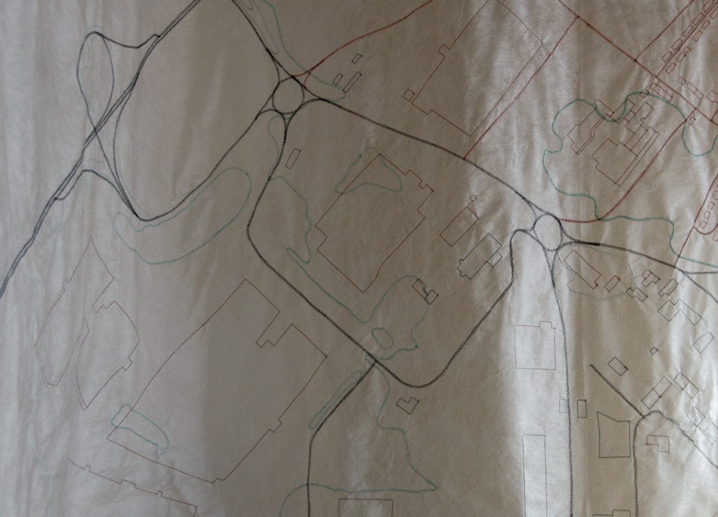 Répartie sur deux étages, l’œuvre invite le.la spectateur.ice à s’interroger sur le changement d’utilisation des sols, et plus particulièrement sur les conséquences de l’urbanisation et de la gentrification de nos territoires.