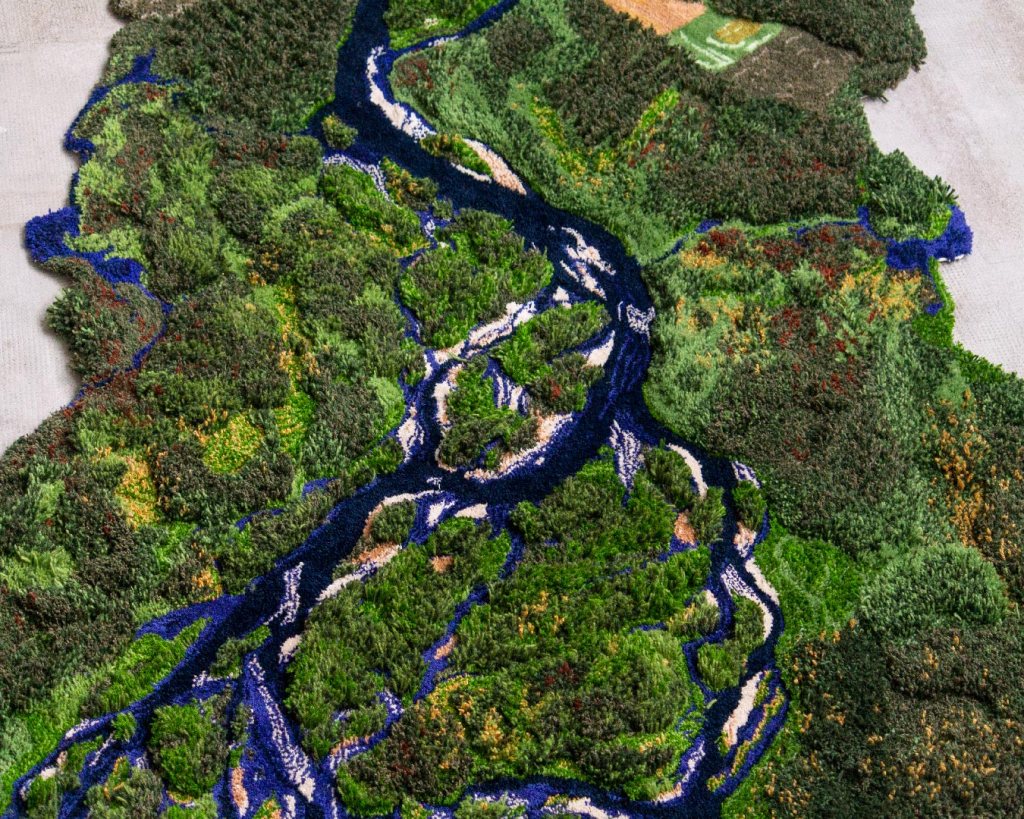 Riverscape – littéralement «paysage rivière» – nous rappelle que la rivière ne se limite pas à son lit mineur visible, mais qu’elle s’inscrit dans un réseau hydrologique complexe et interconnecté. Cette œuvre explore la transformation d’une rivière lorsque l’humain abandonne les fonds de vallée et permet à l’eau de se réapproprier le territoire. La rivière anabranche renaît alors, soutenue par une espèce clé de voute : le castor. Ce mammifère joue un rôle essentiel dans la reconnexion de l’eau à la terre, rétablissant l’équilibre écologique et nourrissant la résilience des écosystèmes.